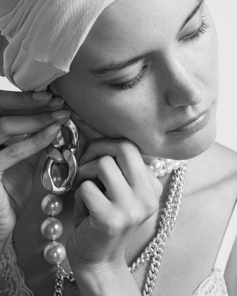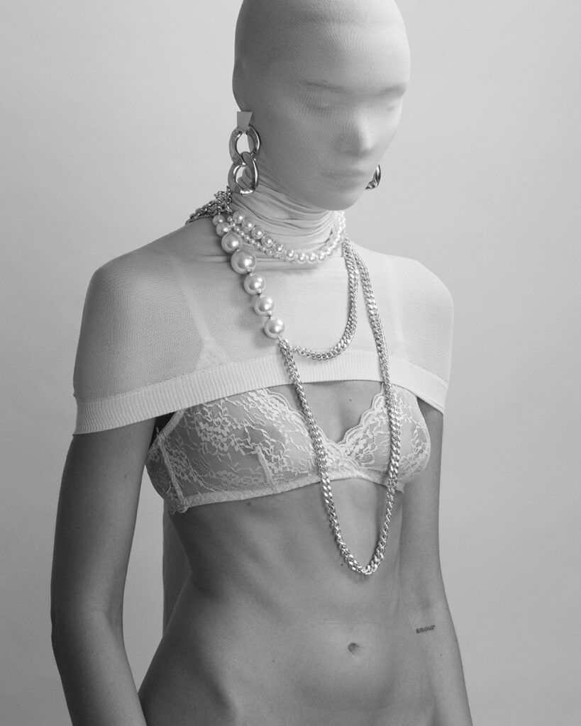 collier & earrings Perrine Taverniti , pink collant Cavallini_Shop, lace bra La perla Lingerie